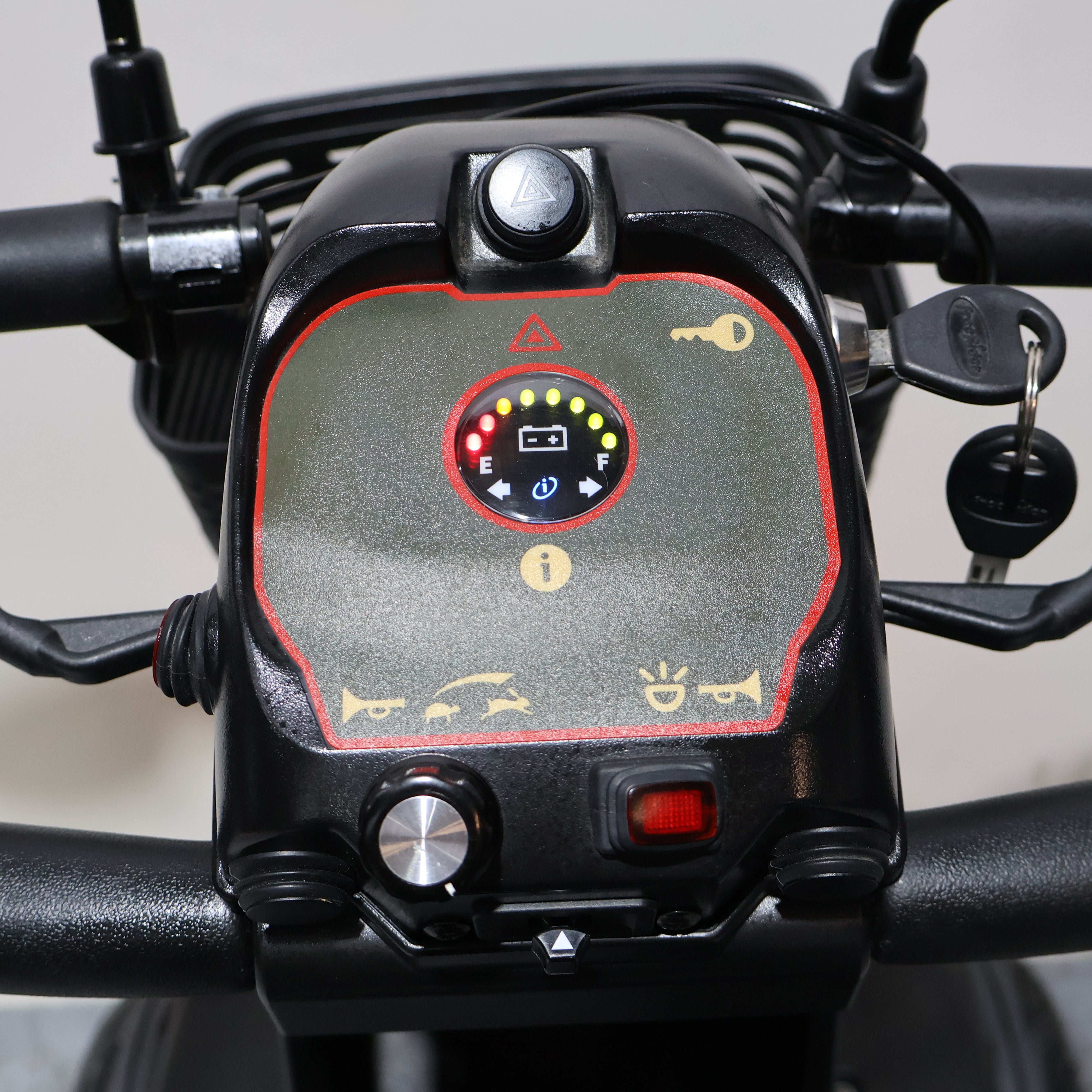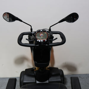 The Freerider FR1 Cruiser Mobility Scooter is a top-of-the-range Mobility Scooter that features a striking gold coloured body and all-round lighting package to ensure maximum visibility even when travelling at night-time. As standard, this groundbreaking Mobility Scooter comes with a luxurious quilted captain's seat and all-around suspension to ensure the most comfortable ride possible. The spacious legroom, gas-strut tiller and adjustable seat allow the user to select the perfect driving position.