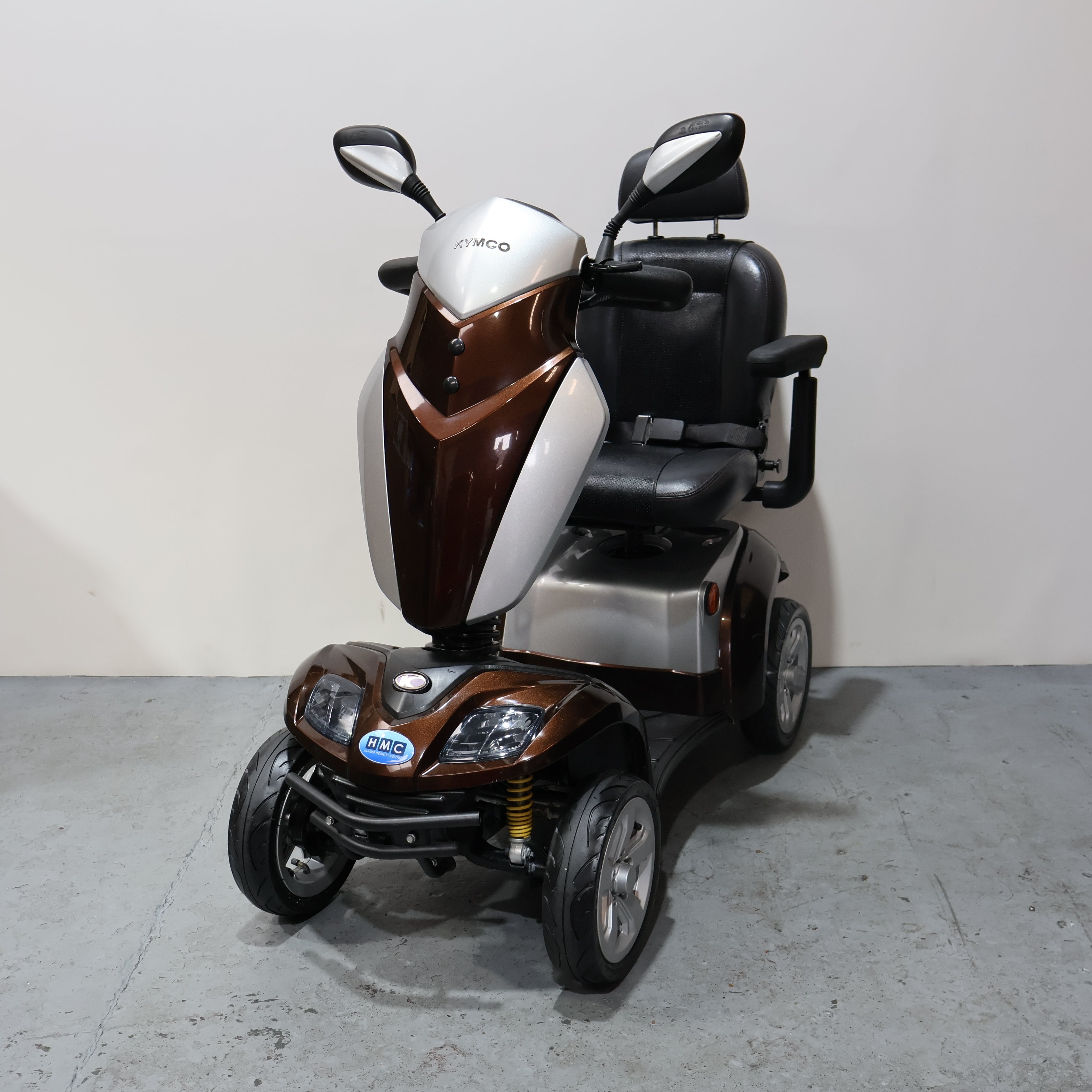 Sporty low profile tyres fitted to large 12" alloy wheels add to the appearance of this Kymco mobility scooter. The Kymco Agility mobility scooter is also fitted with an advanced, all round oil dampened suspension system to enhance the level of comfort on offer. This is further enhanced by the luxury breathable Captain seat offering excellent levels of support.