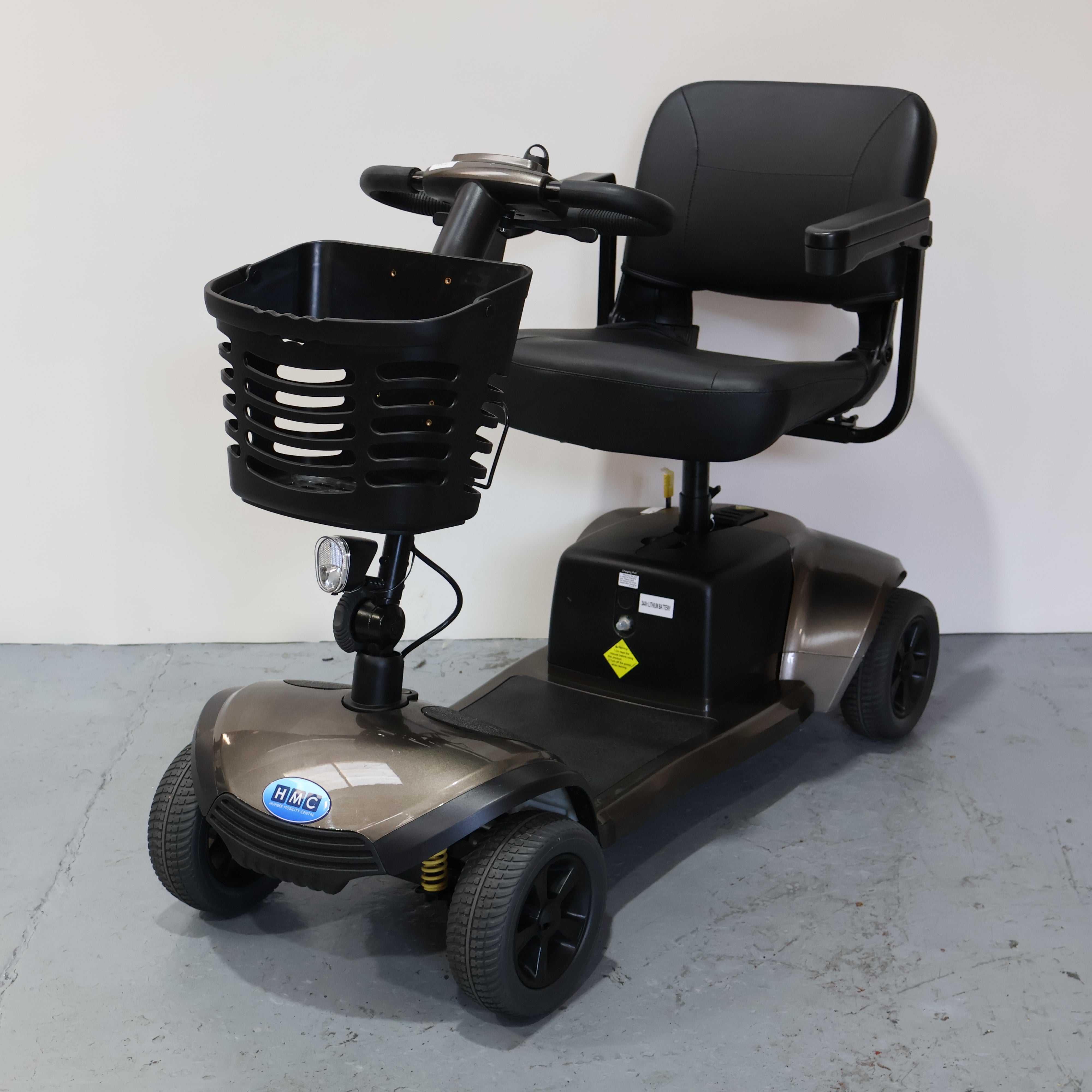 The front LED headlight keeps you visible in low light, The battery pack is removable making charging simple, allowing you to leave the mobility scooter in the boot of your vehicle. There is even a USB charger to keep your phone topped up.